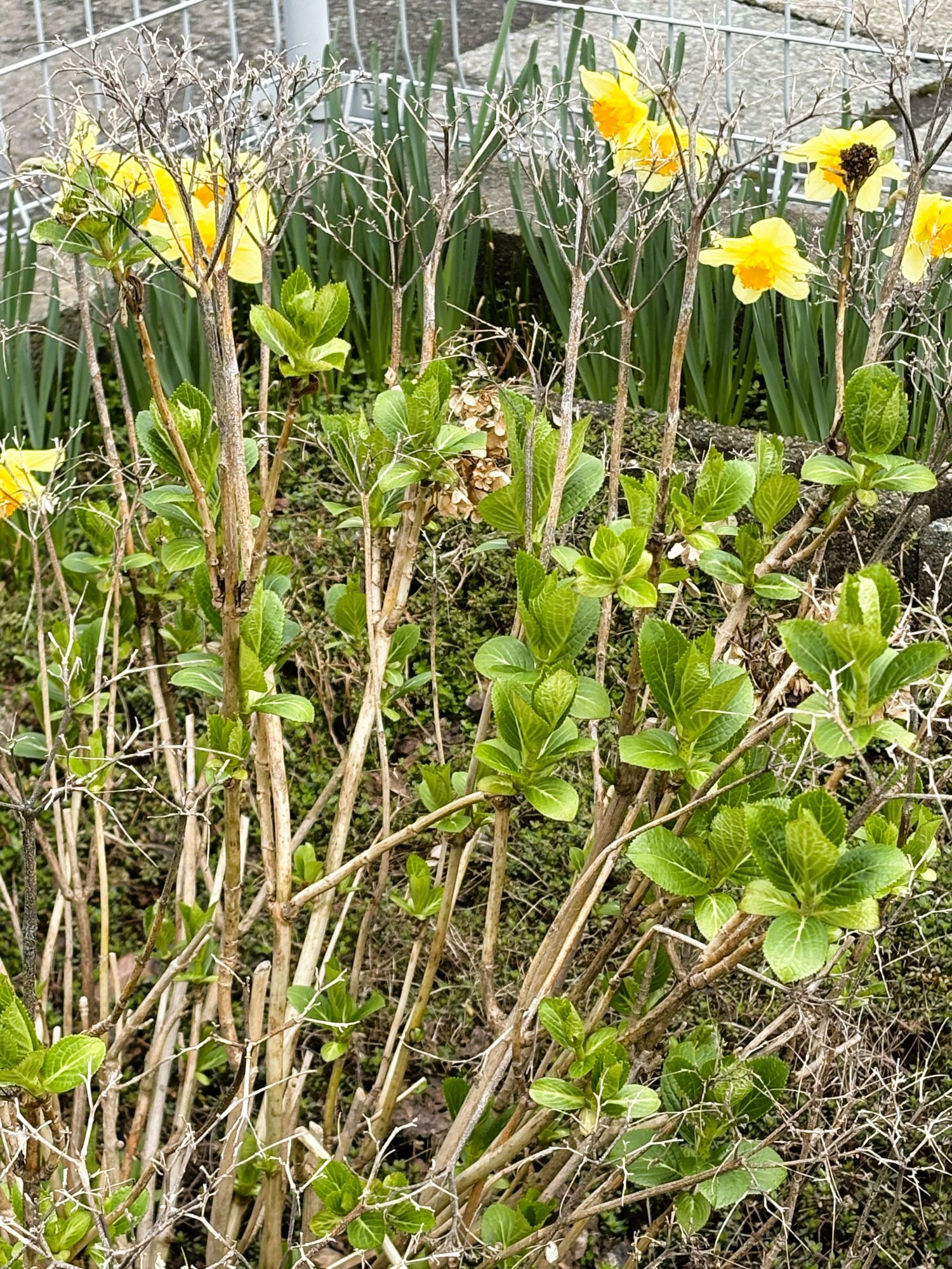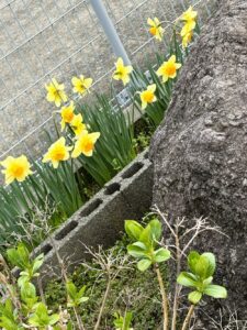 出張から戻りましたらアチコチラッパ水仙満開