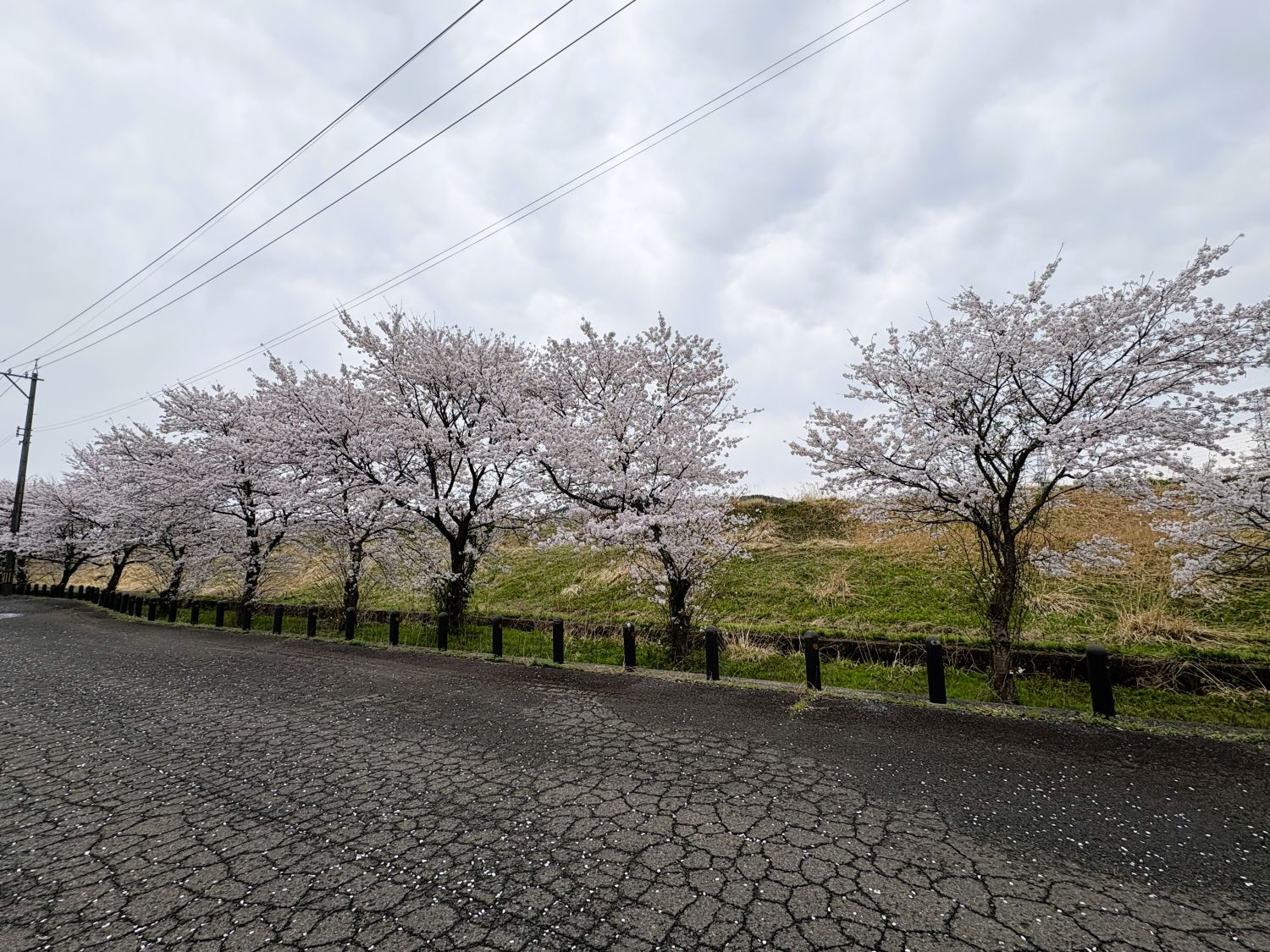団地内の桜は満開ですが、春の嵐で花弁が舞っています